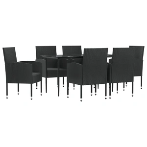 Enjoy a nice meal or afternoon tea in your outdoor space with this garden dining set! Featuring an elegant design, it will become the focal point of your garden and patio! Durable material: Poly rattan is an exceptional resistance material and durable in different weather conditions. It also needs little maintenance.Sturdy frame: This garden table and chair are constructed with a steel frame, which ensures sturdiness and stability.Practical tabletop: The smooth tabletop of the dinner table is made of tempered glass which is easy to clean with a damp cloth. Additionally, the sturdy tabletop is perfect for placing meals, drinks, and other decorative items.Comfortable seat experience: The thick and removable seat cushions are included for your comfort. Good to know:To make sure your outdoor furniture stays beautiful, we recommend protecting it with a waterproof cover.