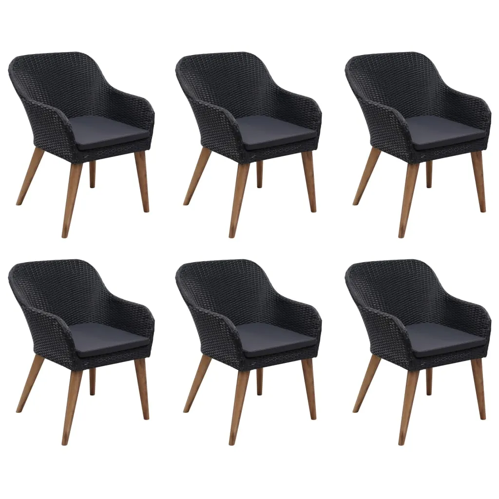 Create a compelling and cohesive aesthetic in your outdoor space with this garden dining set! The dinner table is made of solid acacia wood with an oil finish, which makes it stable, durable and easy to maintain. Featuring a powder-coated steel frame covered with weather-resistant PE rattan, these dining chairs are sturdy and easy to clean. The ergonomically-designed shape and thickly-padded cushions will provide the ultimate seating comfort. The low-maintenance polyester cushion covers can be easily removed and washed. Important note: We recommend covering the dining set during rain, snow and frost for its best service to last.