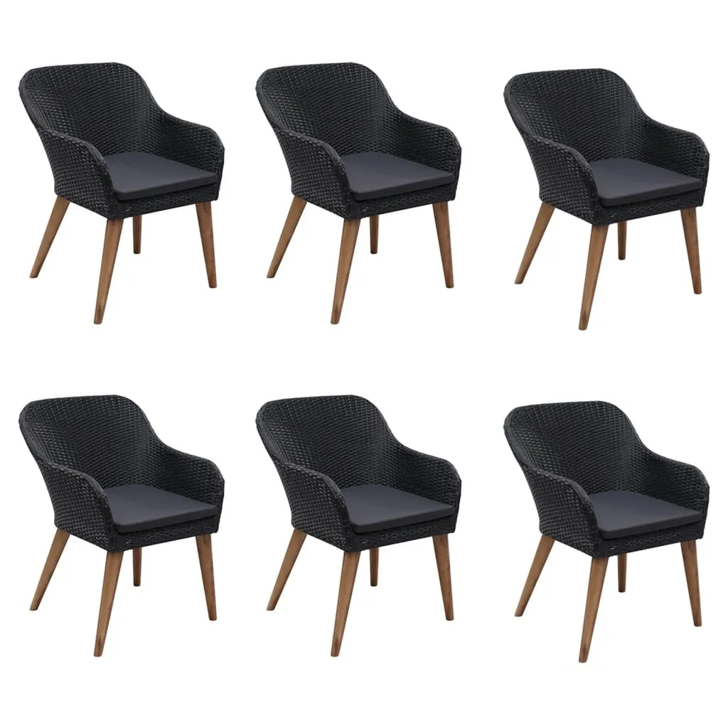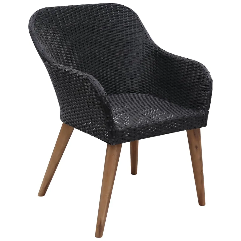 Create a compelling and cohesive aesthetic in your outdoor space with this garden dining set! The dinner table is made of solid acacia wood with an oil finish, which makes it stable, durable and easy to maintain. Featuring a powder-coated steel frame covered with weather-resistant PE rattan, these dining chairs are sturdy and easy to clean. The ergonomically-designed shape and thickly-padded cushions will provide the ultimate seating comfort. The low-maintenance polyester cushion covers can be easily removed and washed. Important note: We recommend covering the dining set during rain, snow and frost for its best service to last.