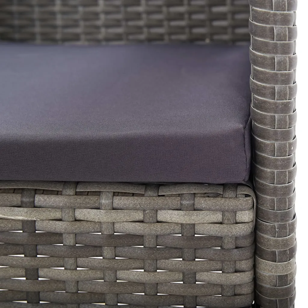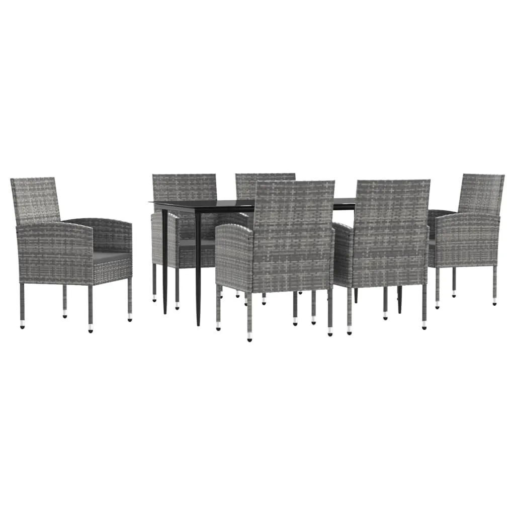 Enjoy a nice meal or afternoon tea in your outdoor space with this garden dining set! Featuring an elegant design, it will become the focal point of your garden and patio! Durable material: Poly rattan is an exceptional resistance material and durable in different weather conditions. It also needs little maintenance.Sturdy frame: This garden table and chair are constructed with a steel frame, which ensures sturdiness and stability.Practical tabletop: The smooth tabletop of the dinner table is made of tempered glass which is easy to clean with a damp cloth. Additionally, the sturdy tabletop is perfect for placing meals, drinks, and other decorative items.Comfortable seat experience: The thick and removable seat cushions are included for your comfort. Good to know:To make sure your outdoor furniture stays beautiful, we recommend protecting it with a waterproof cover.