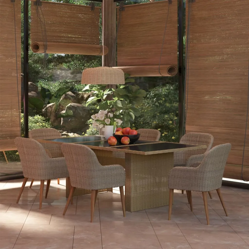 This garden dining set with an elegant design makes a great choice for dining or relaxing in the garden or on the patio! The outdoor furniture set features a sturdy powder-coated steel frame which makes it very stable and durable. Thanks to the weather-resistant PE rattan, the dining set is easy to clean, hardwearing as well as suitable for daily outdoor use. The glass tabletop is also easy to clean with a damp cloth. Moreover, the included soft seat cushions also add the set's extra comfort. The low-maintenance polyester cushion covers can be easily removed and washed. Note: We recommend covering the set in the rain, snow and frost.