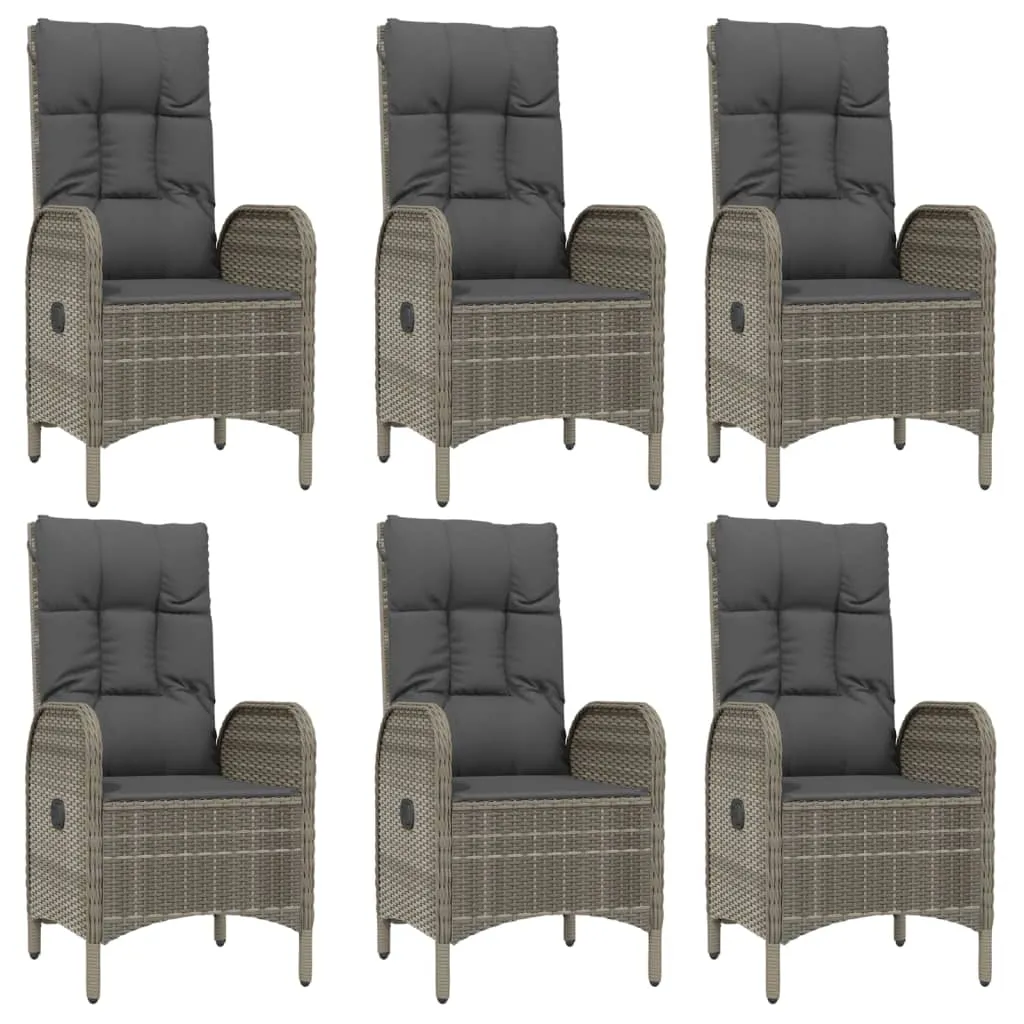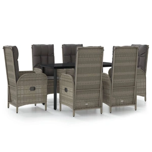 This trendy garden dining set, featuring an elegant and contemporary design, is a great choice for dining or relaxing in your garden. Weather-resistant material: PE rattan, also known as poly rattan, is weather resistant and easy to clean. It remains beautiful on the outside for a long period of time. It offers great quality, convenience and an aesthetic look.Sturdy frame: The powder-coated steel frames make the outdoor dining set sturdy and stable for daily outdoor use.Practical tabletop: The smooth tabletop of the garden table is made of tempered glass which is easy to clean with a damp cloth. Additionally, the sturdy tabletop is perfect for placing meals, drinks, and other decorative items.Reclining function: The garden chairs are specially designed with a reclining function so that you can adjust the backrest as per your comfort.Comfortable seat experience: The backrest adds extra seating comfort for the garden chair. Also, the thickly padded cushions provide comfort for your sitting time. Good to know:To make assembly as easy as possible, each product is delivered with a manual. Note:To make sure your outdoor furniture stays beautiful, we recommend protecting it with a waterproof cover.