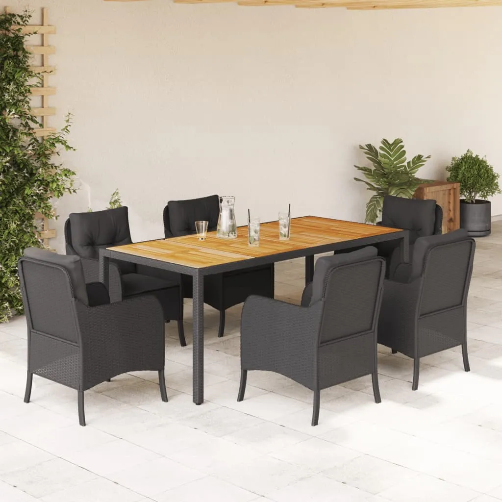 This garden dining set is a great choice for al fresco dining or just relaxing in the garden, backyard, or patio. Durable material: PE rattan, also known as poly rattan, is a strong, low-maintenance synthetic material that looks like natural rattan. It's lightweight, easy to clean, and commonly used for outdoor furniture due to its durability and weather-resistant properties.Comfortable seat experience: This outdoor furniture, complete with thickly padded cushions, offers a comfortable seating experience.Removable and washable cover: These seat cushions feature removable covers for easy washing and maintenance. The chair cushion covers have a flap at the back for easy attachment to the chairs.Stable and easy-to-clean tabletop: This garden table has an acacia wood top that is sturdy, durable, and easy to clean with a damp cloth.Robust and stable frame: The powder-coated steel frame ensures the garden furniture is strong and stable for daily outdoor use. Good to know:To make sure your outdoor furniture stays beautiful, we recommend protecting it with a waterproof cover.