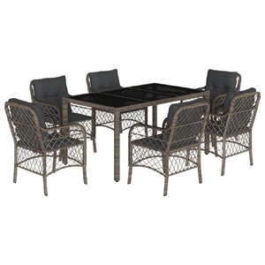 This garden dining set is a great choice for al fresco dining or just relaxing in the garden, backyard, or patio. Durable material: PE rattan, also known as poly rattan, is a strong, low-maintenance synthetic material that looks like natural rattan. It's lightweight, easy to clean, and commonly used for outdoor furniture due to its durability and weather-resistant properties.Comfortable seat experience: This outdoor furniture, complete with thickly padded cushions, offers a comfortable seating experience.Removable and washable cover: These seat cushions feature removable covers for easy washing and maintenance.Glass tabletop: The outdoor table's top is made from strong and durable tempered glass, making it easy to clean with a damp cloth and adding a touch of elegance to your outdoor space.Robust and stable frame: The powder-coated steel frame ensures the garden furniture is strong and stable for daily outdoor use. Good to know:To make sure your outdoor furniture stays beautiful, we recommend protecting it with a waterproof cover.