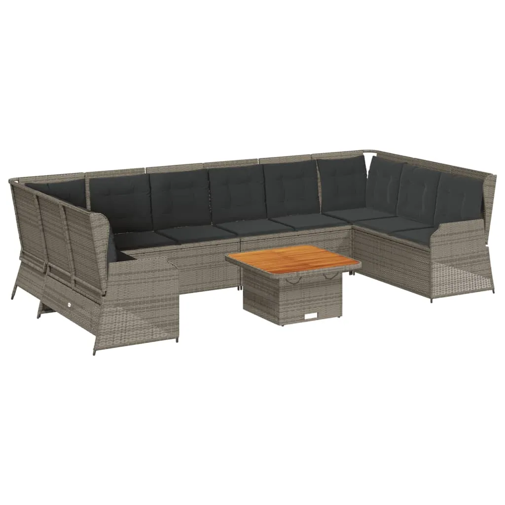 This garden lounge set is the perfect addition to your backyard, terrace, or patio, providing a comfortable and inviting space for chatting with family and friends or simply relaxing and enjoying the outdoors. Durable material: PE rattan, also known as poly rattan, is a strong, low-maintenance synthetic material that looks like natural rattan. It's lightweight, easy to clean, and commonly used for outdoor furniture due to its durability and weather-resistant properties.Adjustable backrest: You can adjust the backrest to any position by pulling the handle, and quickly return it to its original position.Removable and washable cover: These seat cushions feature removable covers for easy washing and maintenance.Comfortable seat experience: This outdoor furniture, complete with thickly padded cushions, offers a comfortable seating experience.Stable and easy-to-clean tabletop: This garden table has an acacia wood top that is sturdy, durable, and easy to clean with a damp cloth.Robust and stable frame: The powder-coated steel frame is strong, stable, durable, and resistant to corrosion and harsh weather, ensuring long-lasting performance. Good to know:To make sure your outdoor furniture stays beautiful, we recommend protecting it with a waterproof cover.