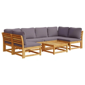 This wooden garden lounge set with cushions has an elegant design and is a great choice for relaxing and enjoying in the garden or patio. Solid acacia wood: Solid acacia wood is a beautiful natural material. Acacia wood is a tropical hardwood, which is dense, sturdy, and durable.Comfortable seat experience: The backrest and the thickly-padded cushions make the garden sofa set more comfortable to sit on.Slatted design: The slatted design of the wooden lounge set effectively prevents water from pooling, ensuring that the seat remains dry and free from potential rot.Modular design: This outdoor furniture set has a modular design, making it completely flexible and easy to move around, so you can create a customised outdoor furniture arrangement. Good to know:To make sure your outdoor furniture stays beautiful, we recommend protecting it with a waterproof cover.