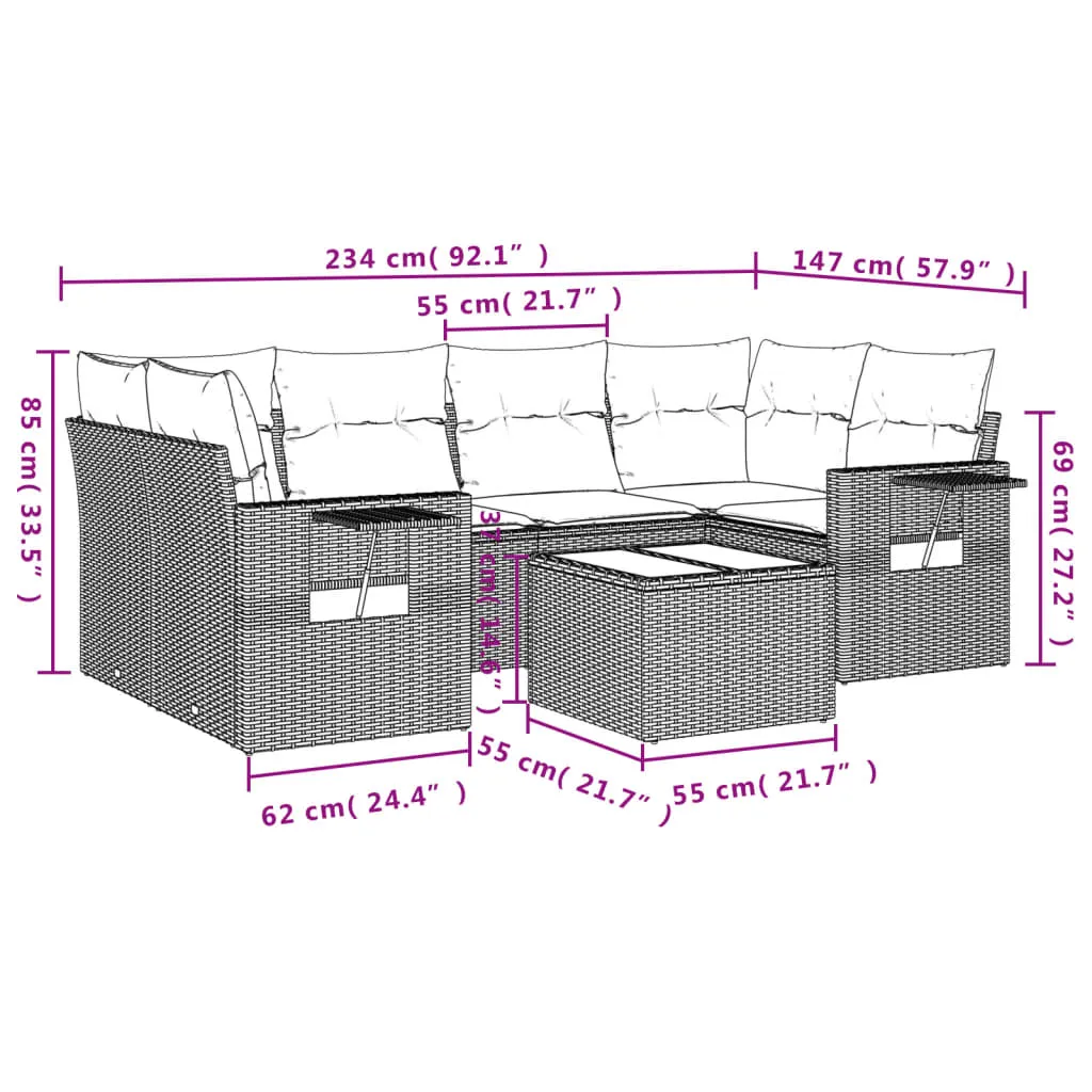 This garden sofa set is the perfect addition to your backyard, terrace, or patio, providing a comfortable and inviting space for chatting with family and friends or simply relaxing and enjoying the outdoors. Durable material: PE rattan, also known as poly rattan, is a strong, low-maintenance synthetic material that looks like natural rattan. It's lightweight, easy to clean, and commonly used for outdoor furniture due to its durability and weather-resistant properties.Glass tabletop: The outdoor table's top is made from strong and durable tempered glass, making it easy to clean with a damp cloth and adding a touch of elegance to your outdoor space. Convenient side table: This outdoor furniture features foldable side tables with a gas spring on the armrests, providing convenient spots to keep your essentials within easy reach. Comfortable seat experience: This outdoor furniture, complete with thickly padded cushions, offers a comfortable seating experience.Modular design: This outdoor furniture set has a modular design, making it completely flexible and easy to move around, so you can create a customised outdoor furniture arrangement. Good to know:To make sure your outdoor furniture stays beautiful, we recommend protecting it with a waterproof cover.