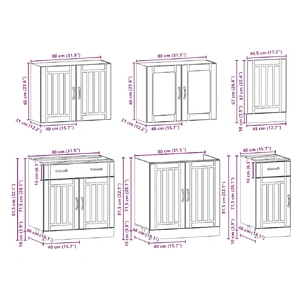 - 1 x Sink base cabinet: 80 x 46 x 81.5 cm (W x D x H)