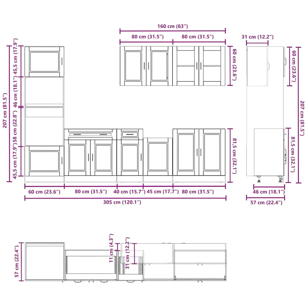 - 1 x Sink base cabinet: 80 x 46 x 81.5 cm (W x D x H)