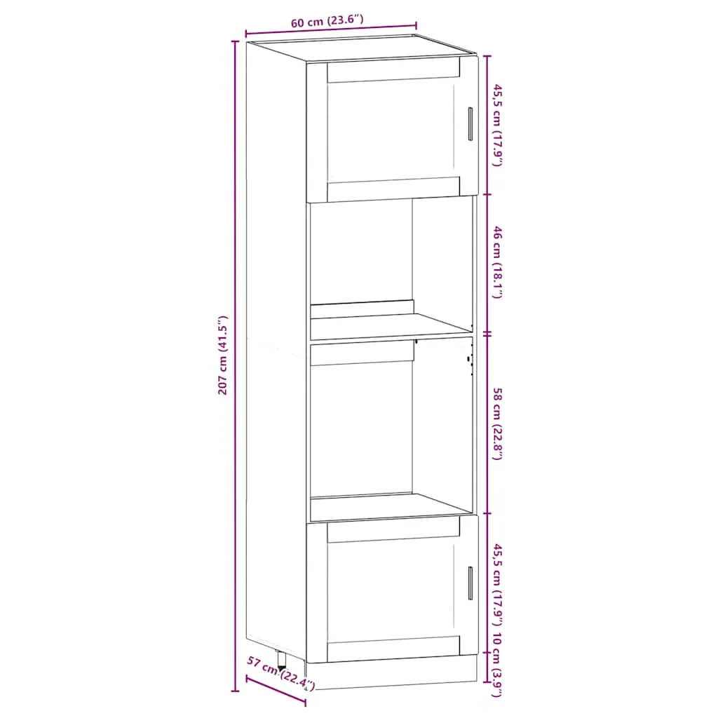 - 1 x Kitchen cupboard: 60 x 57 x 207 cm (W x D x H)