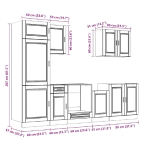 - 1 x Kitchen cupboard: 60 x 57 x 207 cm (W x D x H)