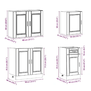 - 1 x Sink base cabinet: 80 x 46 x 81.5 cm (W x D x H)