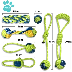 7PCS cotton rope dog toys include knots, balls, and tug designs for varied play.