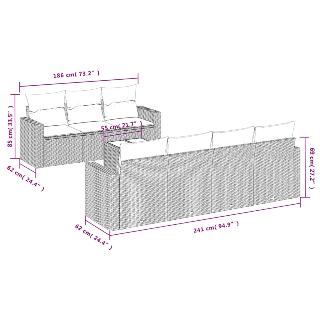 This garden sofa set is the perfect addition to your backyard, terrace, or patio, providing a comfortable and inviting space for chatting with family and friends or simply relaxing and enjoying the outdoors. Durable material: PE rattan, also known as poly rattan, is a strong, low-maintenance synthetic material that looks like natural rattan. It's lightweight, easy to clean, and commonly used for outdoor furniture due to its durability and weather-resistant properties.Comfortable seat experience: This outdoor furniture, complete with thickly padded cushions, offers a comfortable seating experience. The wide armrests also provide a convenient spot to keep your cellphone, cups, or other small items within easy reach.Removable and washable cover: These seat cushions feature removable covers for easy washing and maintenance.Glass tabletop: The outdoor table's top is made from strong and durable tempered glass, making it easy to clean with a damp cloth and adding a touch of elegance to your outdoor space.Modular design: This outdoor furniture set has a modular design, making it completely flexible and easy to move around, so you can create a customised outdoor furniture arrangement. Good to know:To make sure your outdoor furniture stays beautiful, we recommend protecting it with a waterproof cover.