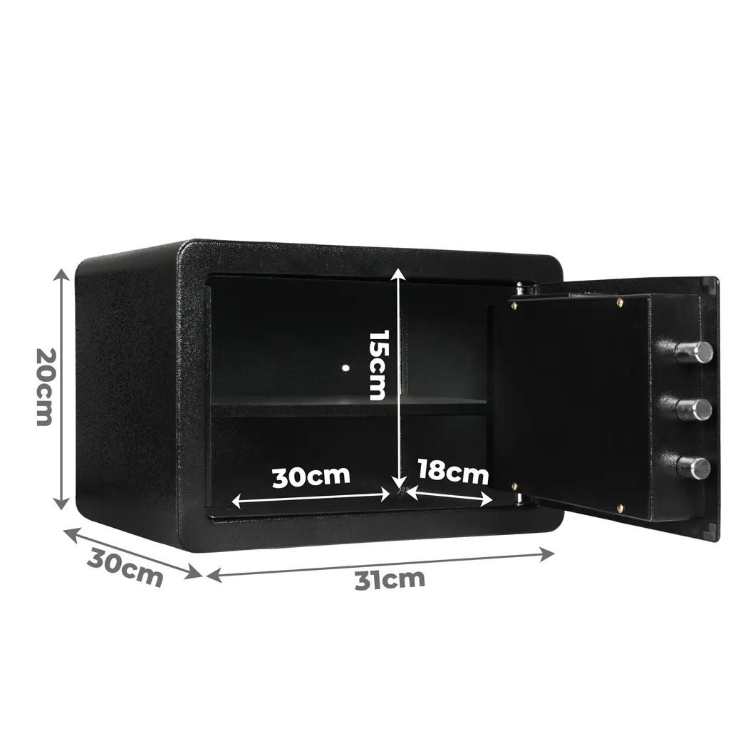 Protect your valuables with this secure digital safe – the perfect safe box for cash, documents, jewelry, and more! Whether you're looking for a small safe to store your money, a gun safe to keep firearms secure, or a fireproof safe to protect important documents from fire damage, this security box has you covered. It features an easy-to-use key safe system and a robust lock box design, making it an ideal choice for home, office, or travel. Keep your peace of mind knowing your most valuable items are locked up tight in this durable, fireproof document box. This money safe is a must-have for anyone who values security and protection – get yours today and experience the ultimate in safe storage!