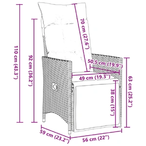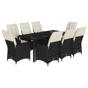 This garden dining set is a great choice for al fresco dining or just relaxing in the garden, backyard, or on the patio. Durable material: PE rattan, also known as poly rattan, is a strong, low-maintenance synthetic material that looks like natural rattan. It's lightweight, easy to clean, and commonly used for outdoor furniture due to its durability and weather-resistant properties.Adjustable backrest: This garden seat has a handle. You can adjust the backrest to any position by pulling the handle, and quickly return it to its original position.Glass tabletop: The outdoor table's top is made from strong and durable tempered glass, making it easy to clean with a damp cloth and adding a touch of elegance to your outdoor space.Comfortable seat experience: This outdoor furniture set, complete with thickly padded cushions, offers a comfortable seating experience.Removable and washable cover: These seat cushions feature removable covers for easy washing and maintenance. The back cushions have a flap at the back for easy attachment to the backrests. Good to know:To make sure your outdoor furniture stays beautiful, we recommend protecting it with a waterproof cover.