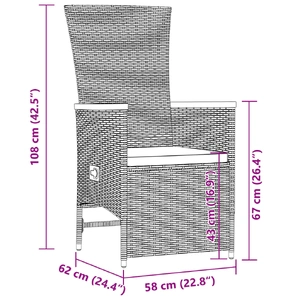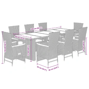 This garden dining set is a great choice for al fresco dining or just relaxing in the garden, backyard, or on the patio. Durable material: PE rattan, also known as poly rattan, is a strong, low-maintenance synthetic material that looks like natural rattan. It's lightweight, easy to clean, and commonly used for outdoor furniture due to its durability and weather-resistant properties.Adjustable backrest and footrest: This garden seat has a handle. You can adjust the backrest and footrest to any position by pulling the handle, and quickly return it to its original position.Comfortable seat experience: This outdoor furniture, complete with thickly padded cushions, offers a comfortable seating experience.Removable and washable cover: These seat cushions feature removable covers for easy washing and maintenance.Stable and easy-to-clean tabletop: This garden table has an acacia wood top that is sturdy, durable, and easy to clean with a damp cloth. Good to know:To make sure your outdoor furniture stays beautiful, we recommend protecting it with a waterproof cover.