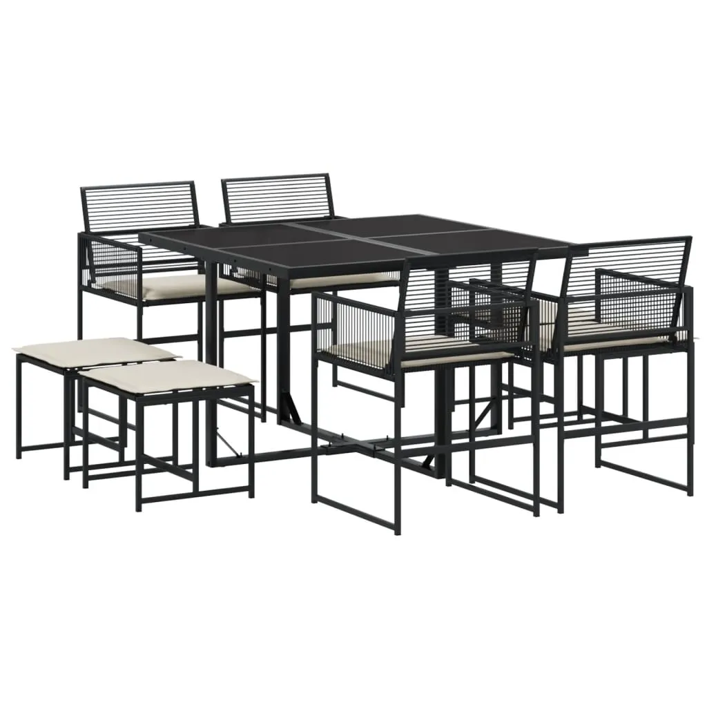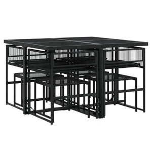 This garden dining set is a great choice for al fresco dining or just relaxing in the garden, backyard, or patio. Durable material: PE rattan, also known as poly rattan, is a strong, low-maintenance synthetic material that looks like natural rattan. It's lightweight, easy to clean, and commonly used for outdoor furniture due to its durability and weather-resistant properties. Glass tabletop: The outdoor table's top is made from strong and durable tempered glass, making it easy to clean with a damp cloth and adding a touch of elegance to your outdoor space. Compact storage: These chairs have a flap backrest that can be folded down, making it easy to store them under the table. When folded, they neatly fit under the table, forming a space-saving cube shape. Additionally, the stools can also be stored under the chairs, further maximising space efficiency. Comfortable seat experience: This outdoor furniture, complete with thickly padded cushions, offers a comfortable seating experience. Good to know:To make sure your outdoor furniture stays beautiful, we recommend protecting it with a waterproof cover.