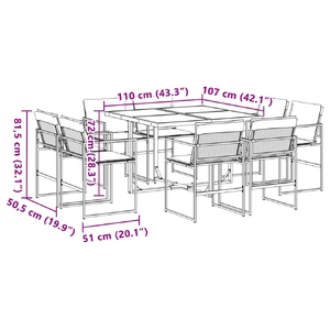 This garden dining set is a great choice for al fresco dining or just relaxing in the garden, backyard, or on the patio. Durable and long-lasting: Textilene fabric is appreciated for its durability, water and fade resistance, easy maintenance, and protection against UV rays and mould, making it an ideal choice for outdoor furniture and shade structures.Compact storage: These chairs have a flap backrest that can be folded down, making it easy to store them under the table. When folded, they neatly fit under the table, forming a space-saving cube shape.Removable and washable cover: These seat cushions feature removable covers for easy washing and maintenance.Glass tabletop: The outdoor table's top is made from strong and durable tempered glass, making it easy to clean with a damp cloth and adding a touch of elegance to your outdoor space.Robust and stable frame: The powder-coated steel frame ensures that the garden furniture is strong and stable for daily outdoor use.Good to know:To make sure your outdoor furniture stays beautiful, we recommend protecting it with a waterproof cover.