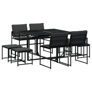 This garden dining set is a great choice for al fresco dining or just relaxing in the garden, backyard, or on the patio. Durable and long-lasting: Textilene fabric is appreciated for its durability, water and fade resistance, easy maintenance, and protection against UV rays and mould, making it an ideal choice for outdoor furniture and shade structures.Compact storage: These chairs have a flap backrest that can be folded down, making it easy to store them under the table. When folded, they neatly fit under the table, forming a space-saving cube shape.Removable and washable cover: These seat cushions feature removable covers for easy washing and maintenance.Glass tabletop: The outdoor table's top is made from strong and durable tempered glass, making it easy to clean with a damp cloth and adding a touch of elegance to your outdoor space.Robust and stable frame: The powder-coated steel frame ensures that the garden furniture is strong and stable for daily outdoor use.Good to know:To make sure your outdoor furniture stays beautiful, we recommend protecting it with a waterproof cover.