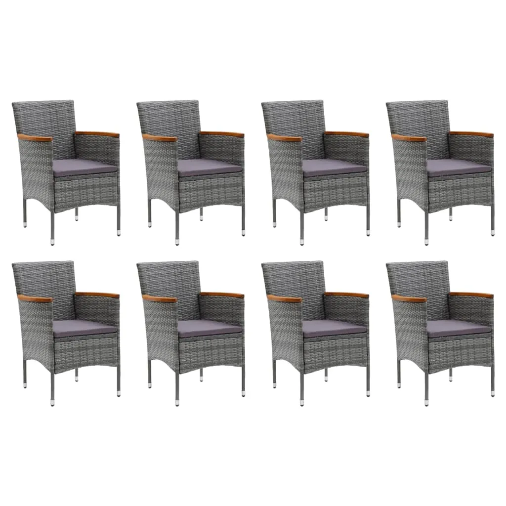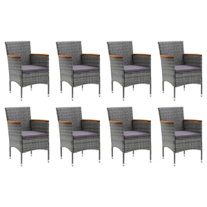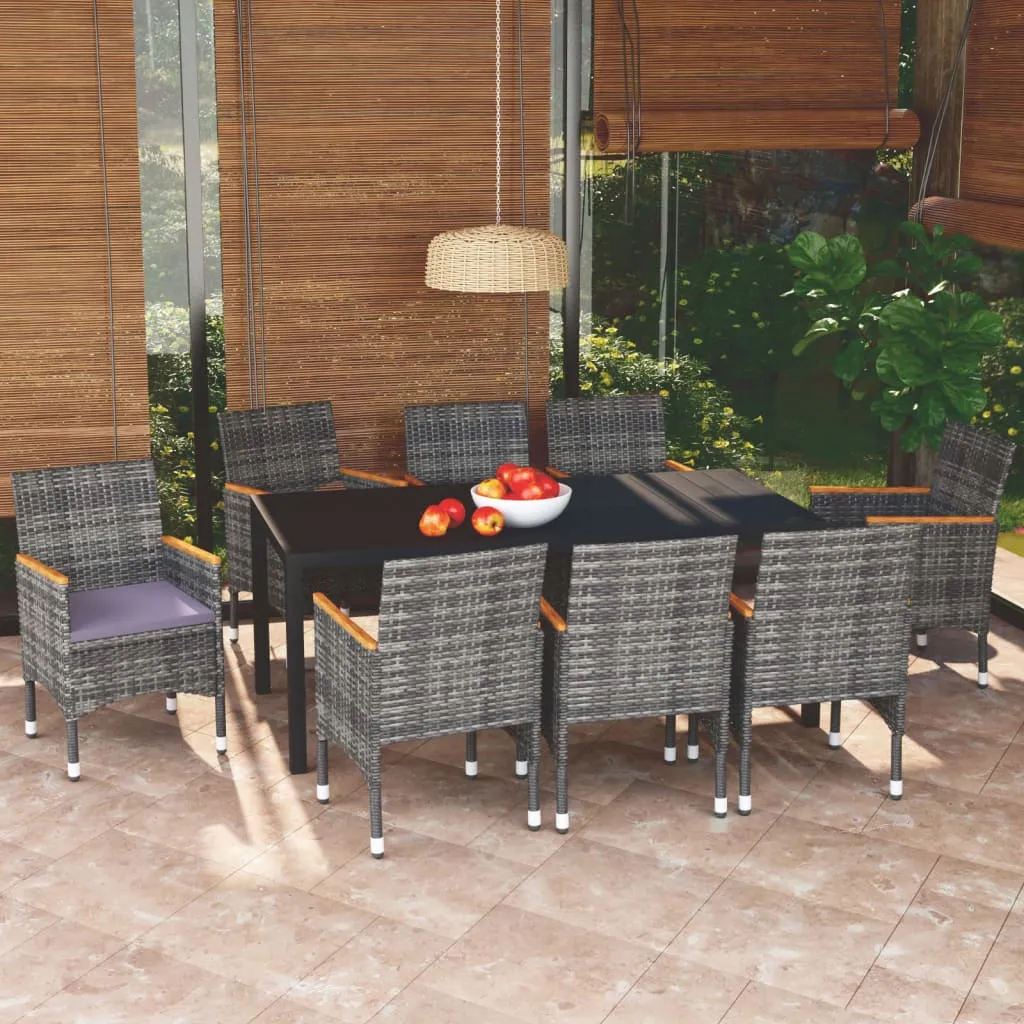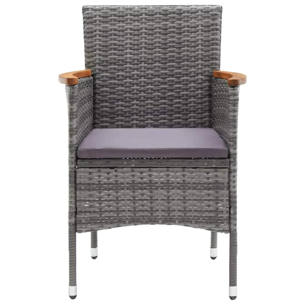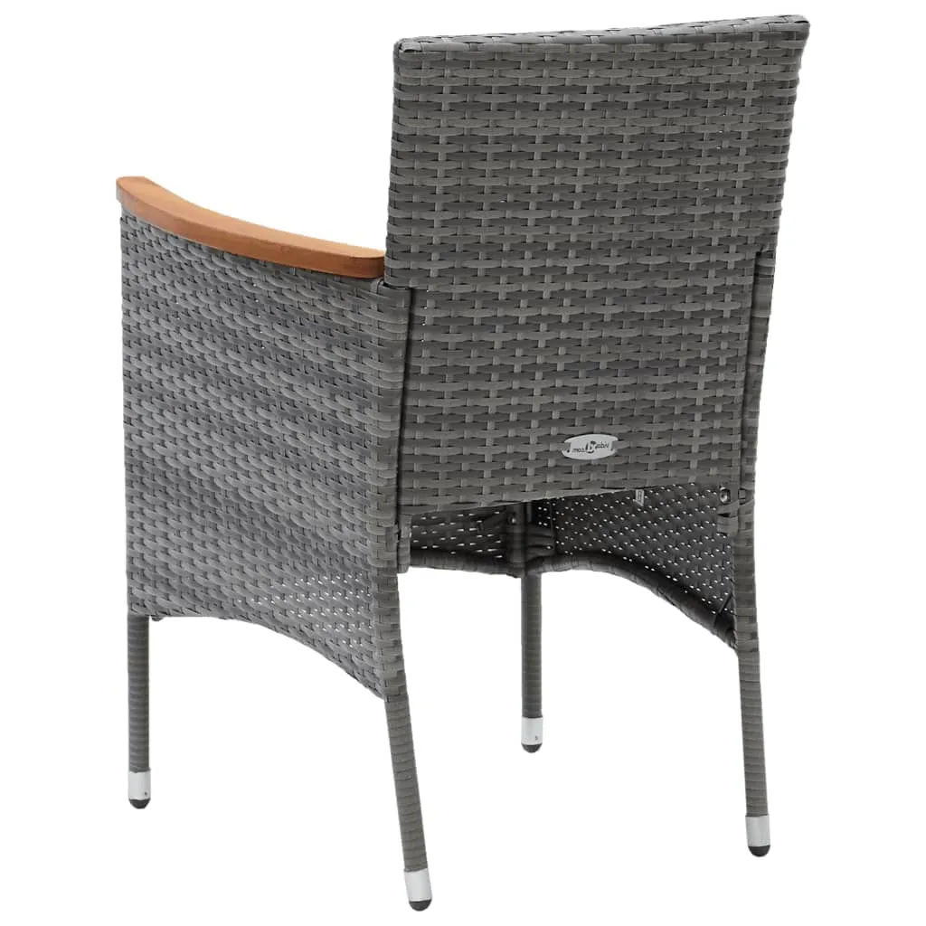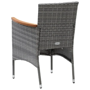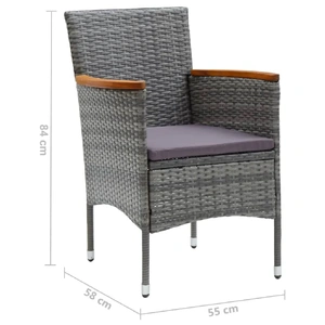 This garden dining set is a perfect combination of style and functionality and is meant to be the focal point of your garden, balcony or patio. Sturdy steel frame wrapped with weather-resistant PE rattan, the garden chairs are rust and mildew proof, providing years of quality relaxation. The armrests are beautifully decorated with solid acacia wood with a natural oil finish, which brings a sense of rustic charm. The outdoor table features a WPC tabletop, which is easy to clean and suitable for outdoor use. The aluminium frame also ensures stability and sturdiness. Additionally, the thickly padded cushions provide ultimate comfort during your sitting time. This patio dining set is easy to move with the lightweight construction. Note: In order to extend the life of your outdoor furniture, we recommend you to clean it regularly and do not leave it outdoors without protection unnecessarily.Clean: Use a mild soap solution.Storing: If possible, store in a cool, dry place indoors. If the product is stored outdoors, protect it with a waterproof cover. Wipe and dry the excess water or snow from flat surfaces after a rain or snowfall. Allow sufficient air circulation to avoid moisture-related damage.