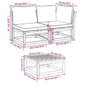 This wooden garden lounge set with cushions has an elegant design and is a great choice for relaxing and enjoying in the garden or patio. Solid acacia wood: Solid acacia wood is a beautiful natural material. Acacia wood is a tropical hardwood, which is dense, sturdy, and durable.Comfortable seat experience: The backrest and the thickly-padded cushions make the garden sofa set more comfortable to sit on.Slatted design: The slatted design of the wooden lounge set effectively prevents water from pooling, ensuring that the seat remains dry and free from potential rot.Modular design: This outdoor furniture set has a modular design, making it completely flexible and easy to move around, so you can create a customised outdoor furniture arrangement. Good to know:To make sure your outdoor furniture stays beautiful, we recommend protecting it with a waterproof cover.