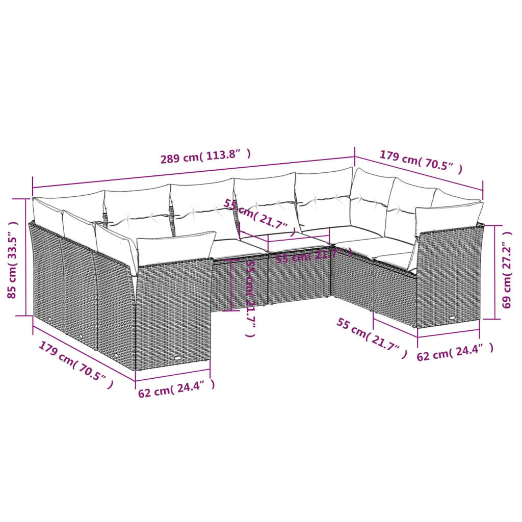 • 9 x Seat cushion with removable and washable cover