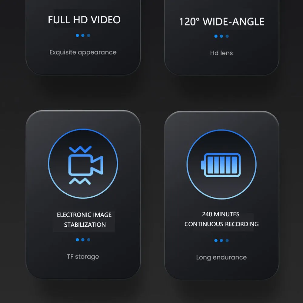 Long Battery Life and Loop Recording: Equipped with a 350mAh battery, supports up to 240 minutes of continuous recording and loop video function. Compatible with microSD cards up to 512GB.