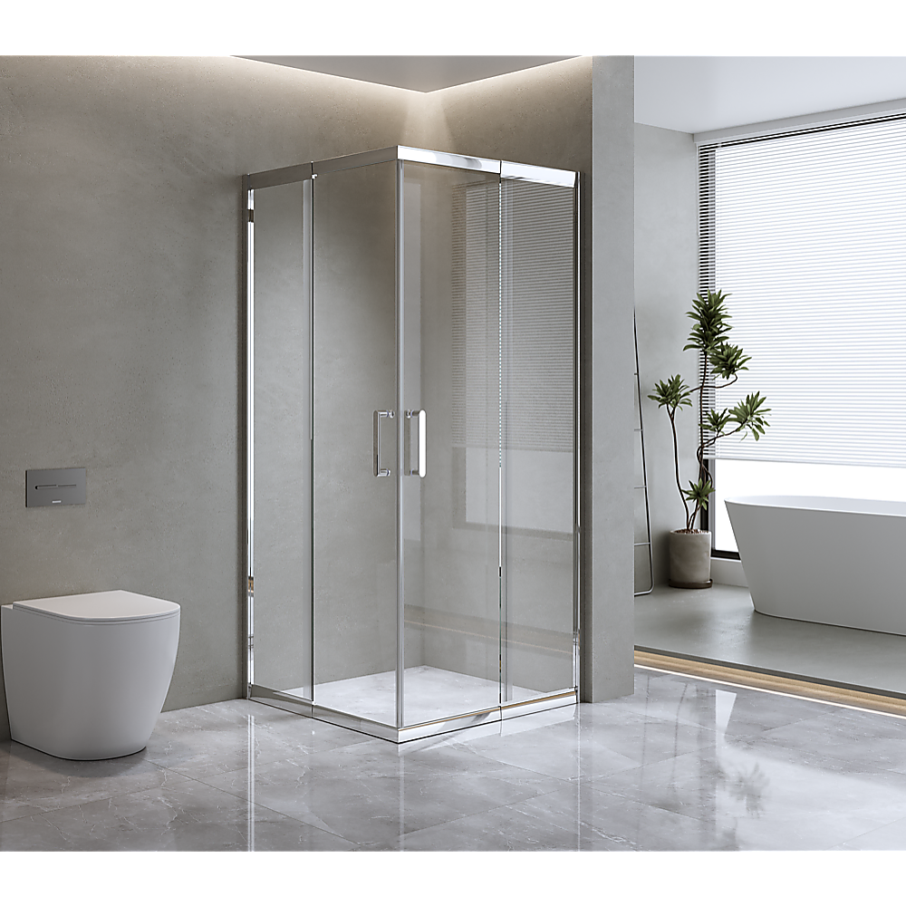 This refined sliding double-door enclosure not only captivates with its beauty but is also engineered for enduring quality. Backed by a waterproof guarantee, it features magnetic seals and high-grade chrome hardware, ensuring resilience against rust due to its stainless steel components. The accompanying side panel offers a universal fit, allowing for versatile right or left-hand installation with a 100mm wall adjustment.