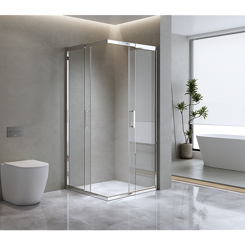This refined sliding double-door enclosure not only captivates with its beauty but is also engineered for enduring quality. Backed by a waterproof guarantee, it features magnetic seals and high-grade chrome hardware, ensuring resilience against rust due to its stainless steel components. The accompanying side panel offers a universal fit, allowing for versatile right or left-hand installation with a 100mm wall adjustment.