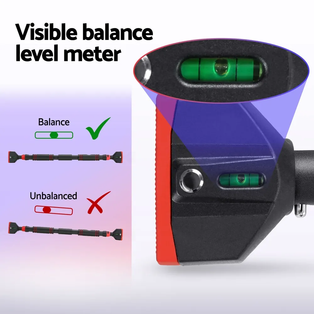 Enjoy flexible, core strengthening exercises anywhere in the home with the Everfit Telescopic Doorway Pull-up Bar. The bar is adjustable to suit hallways between 70 to 95cm in length, making it ideal for most modern doorways. The bar is kept in place with a double safety lock to prevent slippage, and the bar has overall weight-bearing support of 300kg for guaranteed safety and support. A built-in spirit level gives you a visual indicator of whether the bar is straight, making installation easy. Use for a wide variety of exercises including pull-ups, sit-ups, chin-ups and more. Get your fitness journey up and moving with the new Telescopic Pull-up Bar from Everfit.