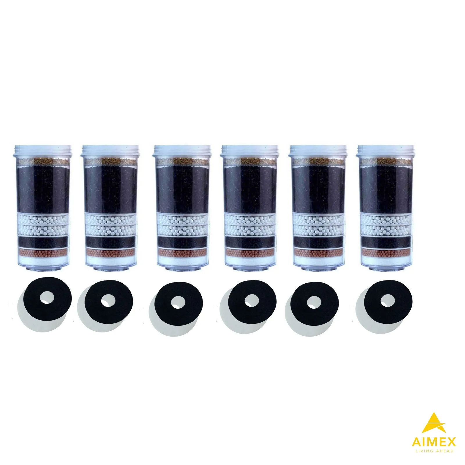 - Activated Carbon: Absorbs chlorine, organic chemicals, odors, and tastes. Transforms tap water into clean, purified water.