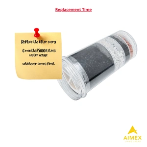 - Replacement: Change the filter every six months or after 5000L of water usage.