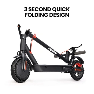 The scooter's design is ideal for adults and teens alike, featuring a long deck for enhanced control. The 8.5-inch airless tyres work with the rear torsion plate to absorb shock and dampen vibration.