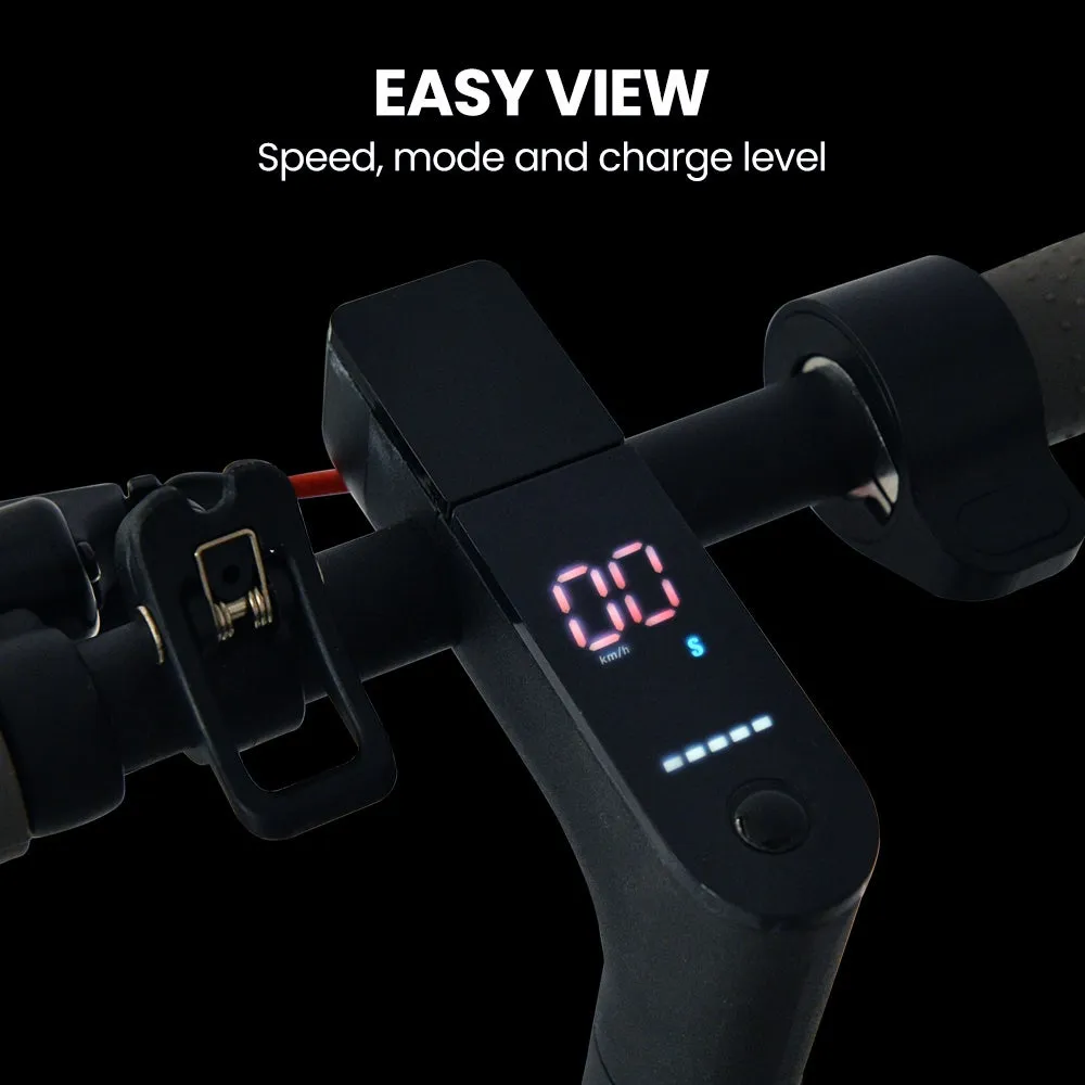 Keep track of your speed, mode, and battery life with the easy-to-read backlit LED display. The EverBrite LED headlight and brake light let you extend your adventures into the evening. When done, simply fold the scooter with a single touch and roll it away effortlessly.