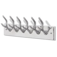 This coat rack, decorated with beautiful antlers, will make a decorative as well as practical addition to your room. With an invisible mounting system, the coat rack serves as an ideal place to hang your coats, hats, bags, scarves etc. Made of high-quality aluminium with polished finish, this coat rack has a sturdy structure and is extremely durable. It has 6 hooks to hang something you love. This coat rack will suit any decor and turn an empty wall or dull wardrobe into a feature!