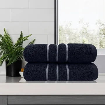 amor classic dobby stripe super soft premium cotton bath towel 2 pcs sailor blue