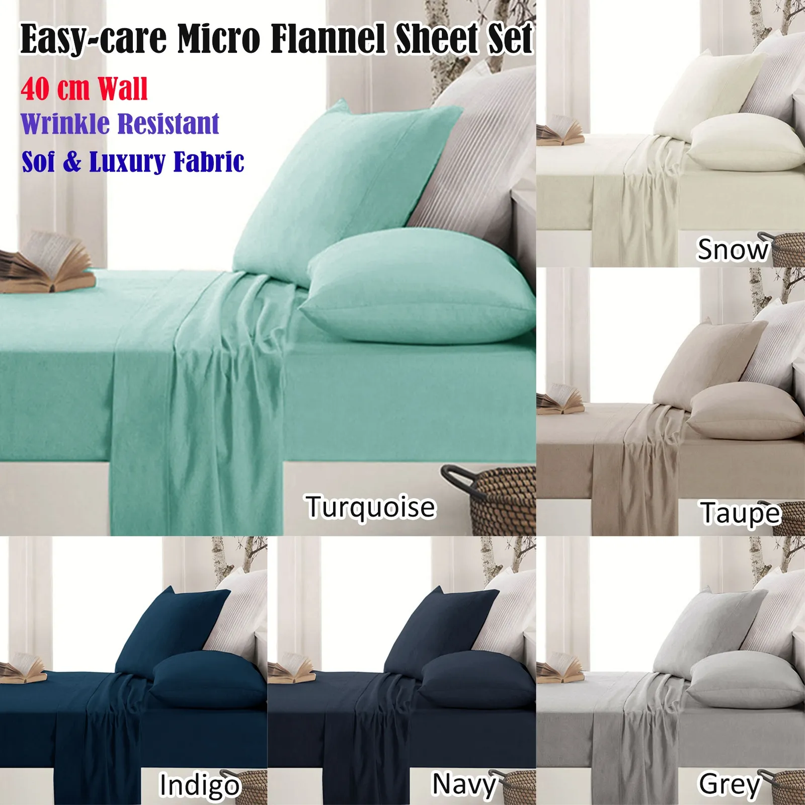 This luxuriously soft and warm Easy-care Micro Flannelette Sheet Set by Apartmento is a cosy micro flannel sheet set that combines the best comfort features of european cotton flannel with the easy care of fleece - without the bulk or weight found in traditional deep pocket flannel sheets. Made from soft and luxurious Polyester fabric, easy-care wrinkle resistant, provides optimal comfort, anti-pill and non shrink qualities, light weight and comfortable. Available in 5 vibrant solid colour designs that you can mix and match with you existing home decor.