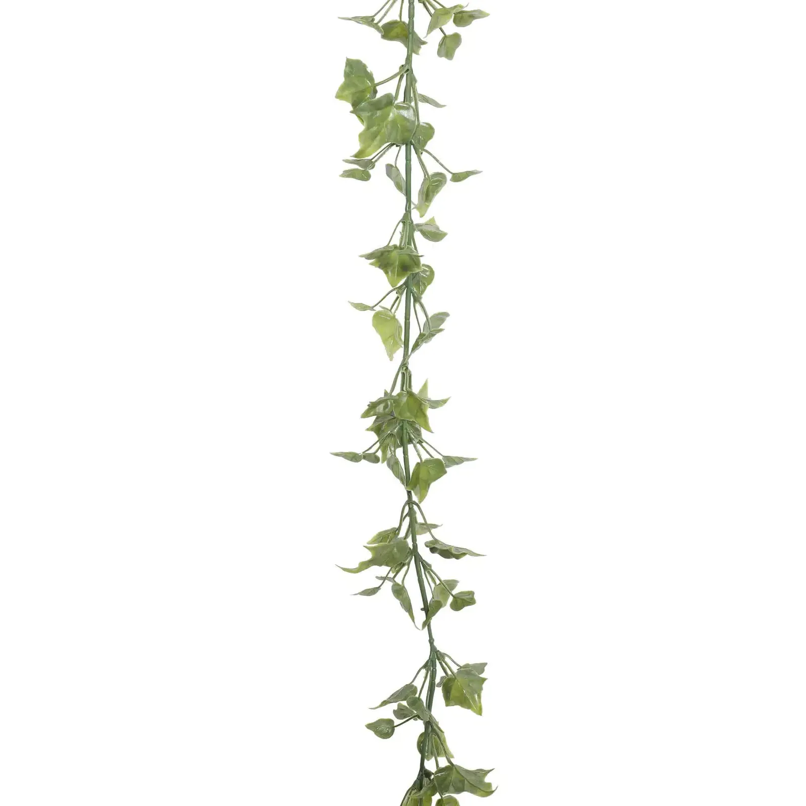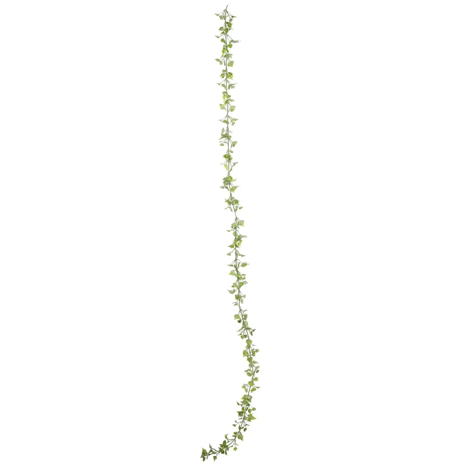 Garlands are normally used as decor during the holidays, but dont let that knowledge restrict your use of it! With its delicate, mixed green leaves, this artificial medium English ivy garland can dress up your home all year around. Its simplistic design would look great on a mantle piece, dresser, or draped across the top of a window. Perfect for commercial installation, wrapping around balustrades or tension wire.