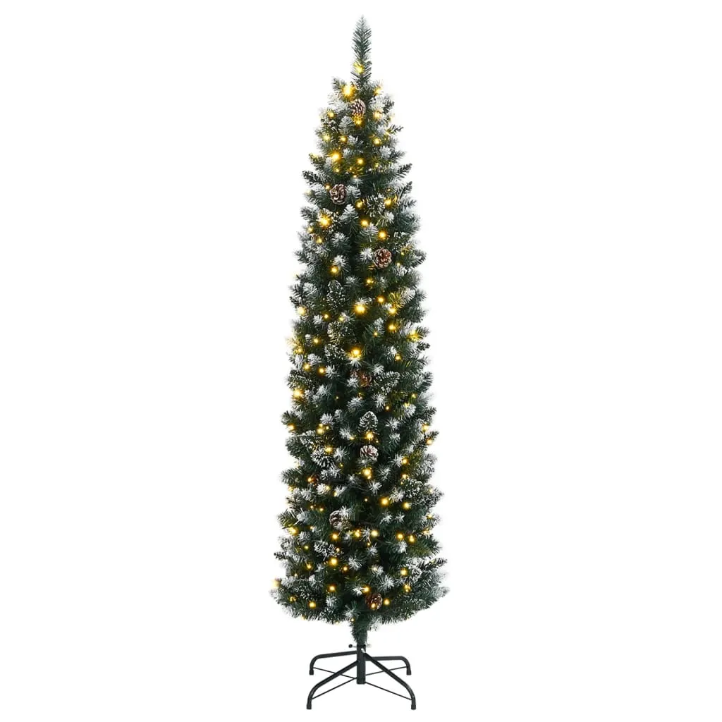 This artificial slim Christmas tree is sure to become a magical eye-catcher among your Christmas decorations and create a unique Christmas atmosphere! Long-lasting and realistic material: This artificial Xmas tree is made of PVC, offering a realistic look without the mess, and it's long-lasting.Sturdy structure: The included steel stand provides stability, ensuring your tree remains upright throughout the holiday.Slim design: This slim Christmas tree adds attractive charm and festival atmosphere to your hallway and any narrow space.With LED lights: The fake Christmas tree, equipped with energy-efficient LED lights, lights up beautifully and creates a cosy Christmas atmosphere.Features 8 lighting modes: The LED Christmas tree is equipped with 8 different lighting effects: a combination of all effects, slow glowing, sparkling/flashing, wave-like, flowing, sequential, continuous lighting, and slow fading. Good to know:The product has a USB connector that requires a certified 5V USB power source (not included).Please ensure that the USB connection is plugged in a dry environment.