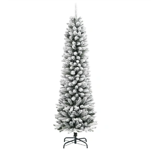 This lovely and lifelike artificial slim Christmas tree with distinctive tips will become the focal point of your holiday decorations. Bushy Christmas tree: The Christmas tree is designed with a lot of beautiful PVC and PE tips, giving the tree a beautiful realistic look along with a bushy appearance.Flocked snow decoration: The Christmas tree is decorated with artificial flocked white snow to create a unique wintery feel.Slim design: This slim tree adds attractive charm and festival atmosphere to your hallway and any narrow space.Sturdy stand: The artificial tree is made of a sturdy steel stand, which provides the tree with optimal stability.Lasting durability: The Xmas tree can be used again every year, making it a very economical choice compared to a real tree.