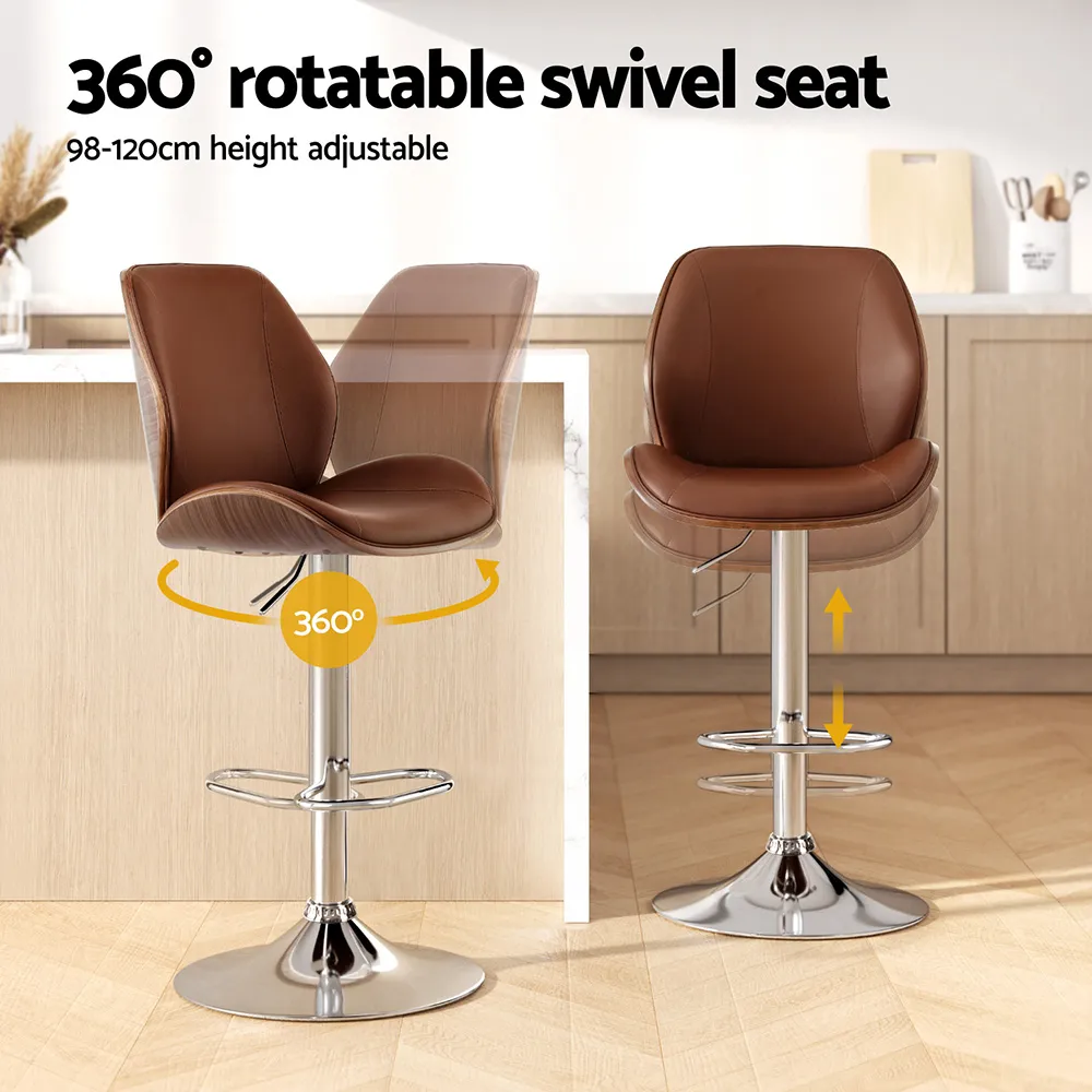Upgrade your space with Artiss Bar Stools. Featuring tool-free height adjustment (98-120cm), these stools combine premium brown leather seats with elegant bentwood backrests. The reinforced gas lift cylinder and semi-circular footrest ensure stability, while anti-slip protectors safeguard floors. Supports 150kg per stool. Easy assembly for instant use.