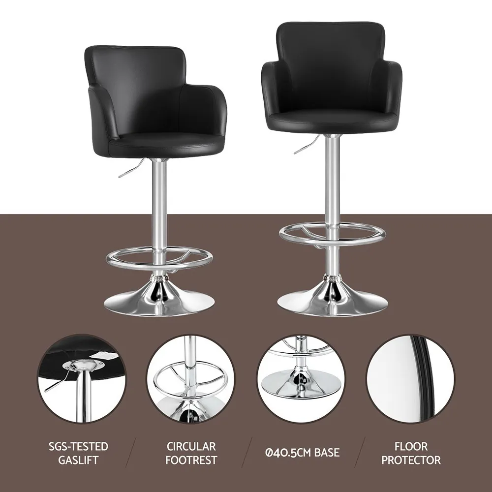The Artiss 1x Leather Bar Stools combine modern functionality with enduring comfort for kitchen islands, breakfast bars, or entertainment spaces. Featuring luxe PU leather upholstery over plush foam padding, these swivel bar stools with full backrests provide all-day seating comfort. The SGS-certified gas lift lever allows effortless height adjustment, while the 360-degree rotation ensures easy mobility. Built with a corrosion-resistant chrome steel frame and stabilising base, these counter-height stools safely support up to 150kg. Complete with protective floor pads and tool-free assembly, they seamlessly blend durability with contemporary style in sleek black.