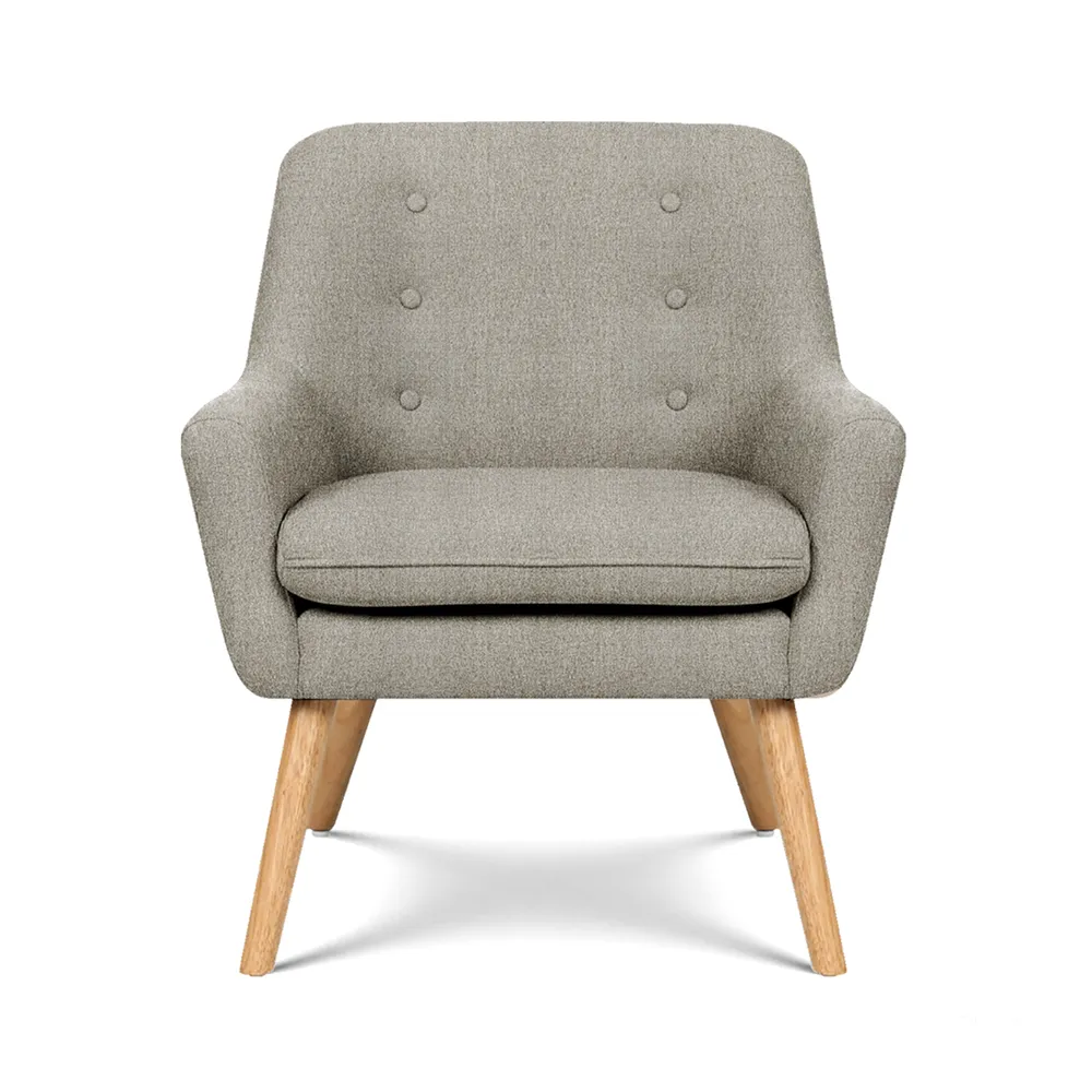 Upholstered in quality polyester, the Anne Armchair is a full size chair with generous seating space. The extra thick foam padding ensures ultimate comfort with exceptional support while the tufted backrest adds an array of luxurious highlights to the overall character of the armchair. Together with a reinforced wooden frame and sturdy tapered rubber wood legs, the Anne Armchair is guaranteed to stand up to durable use for many years to come. Not least, with its neutral tones, the Anne Armchair is a seamless match for any home décor.