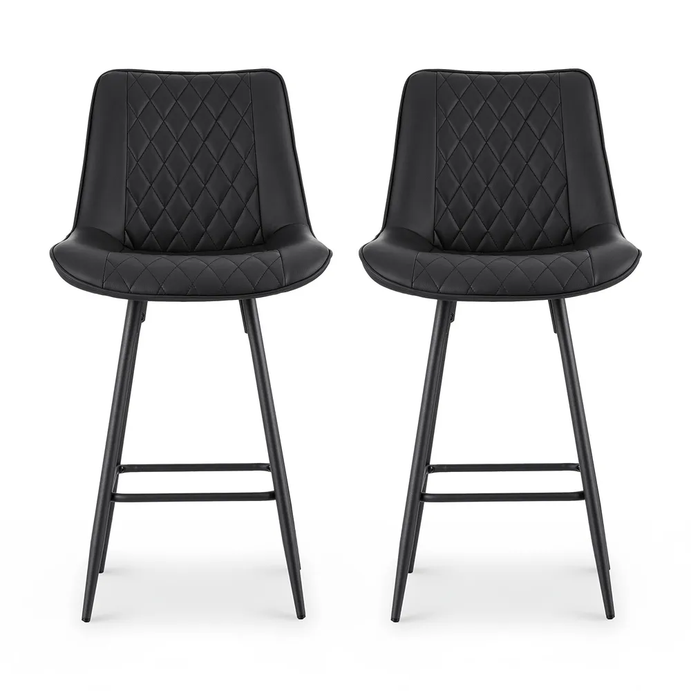 Elevate your seating experience with our set of 2 bar stools. Designed with an ergonomic diamond outlook, these stools combine style and comfort seamlessly. The premium PU leather seat provides a soft, durable surface that's easy to maintain, while the sturdy metal construction ensures each stool can support up to 120kg. Featuring a powder-coated metal footrest and anti-slip floor protectors, they offer stability and added convenience. Assembly is quick and easy, making them a perfect addition to your kitchen, bar, or dining area. Upgrade your space today!