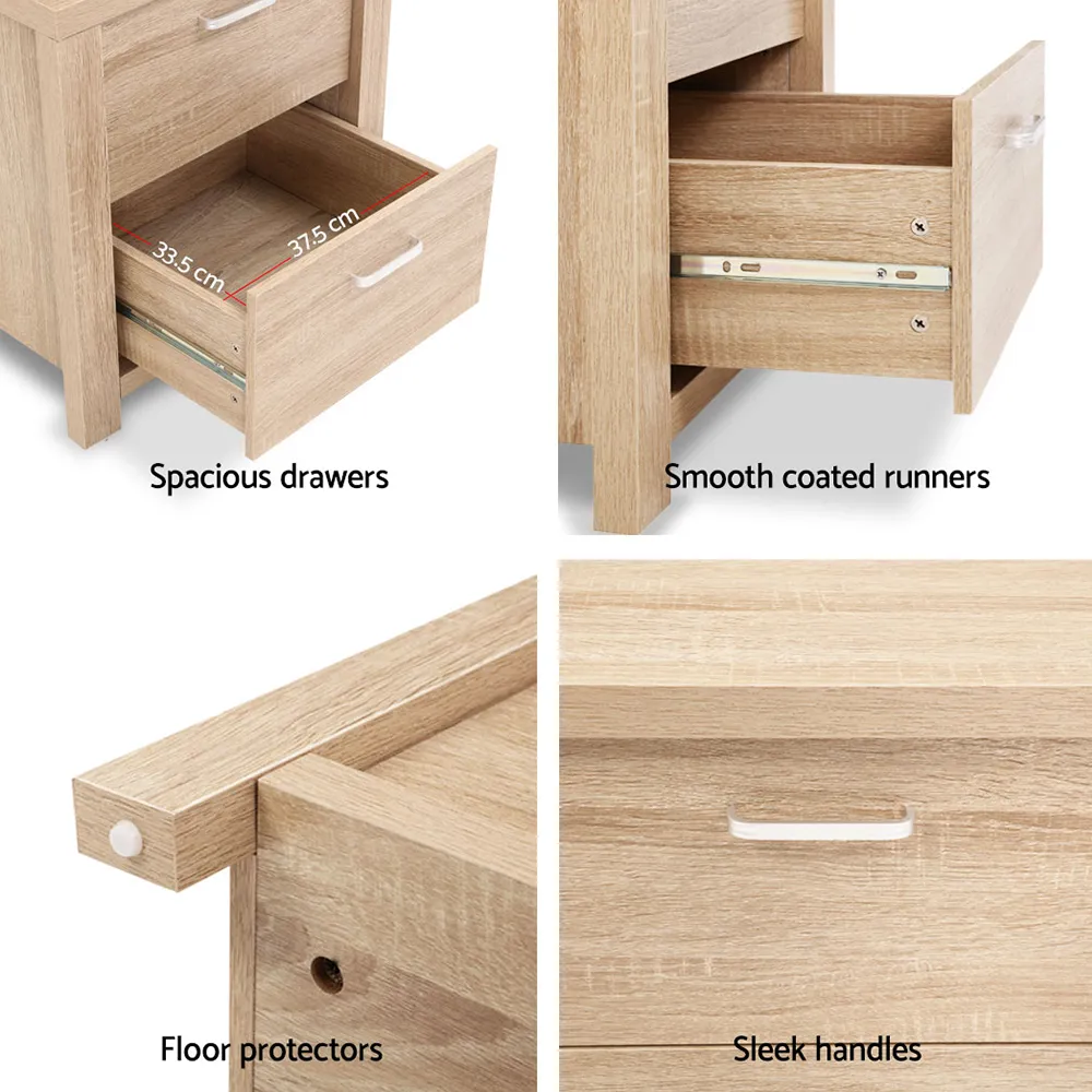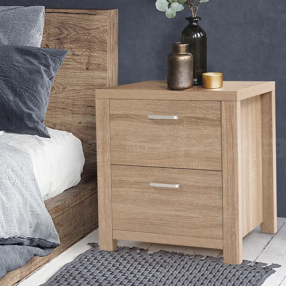 People sometimes wonder why they need a bedside table. The answer is simply because a good bedside table is extra storage space for your personal essentials, a spot for your table lamp, and of course, a place for your cuppa. And not least, a perfect companion to your bed. Our Artiss Maxi Bedside Table is simple and modern with a lasting appeal. Constructed from 30mm thick honeycomb and 15mm thick particle boards with beautiful natural woodgrain finish, the bedside table is solidly constructed and equipped with quality components like smooth coated drawer runners and floor protectors. Better still, ample storage space is found with two spacious drawers for all your bedside or personal essentials. Too good to be used only in the bedroom? Well, you can also use the bedside table as a side table with drawers to complement your contemporary home décor. And best of all, you can also match with other products from the Maxi series for the complete simple-natural look.