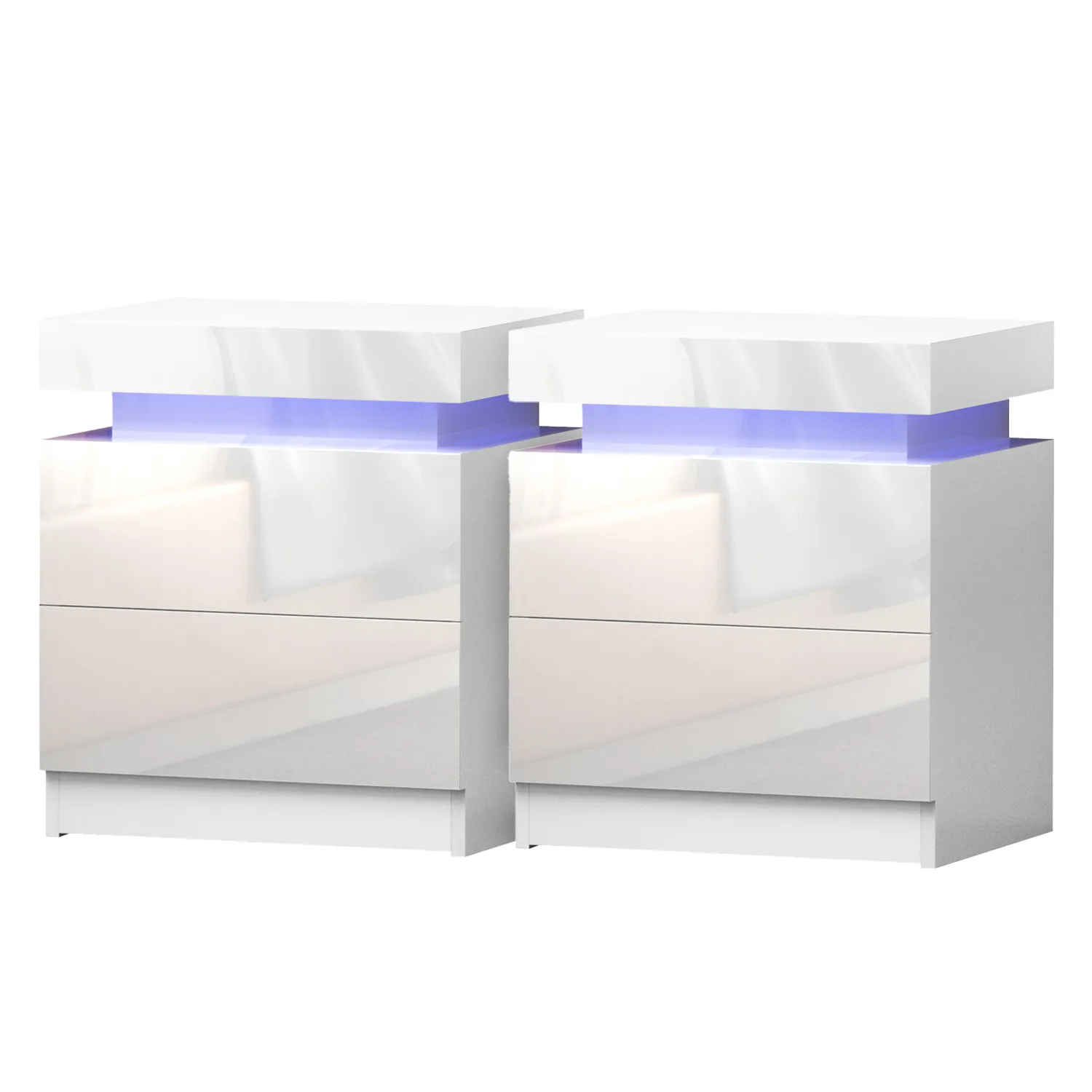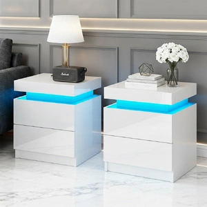 Tired of fumbling in the dark for a light switch in the middle of the night? With our Artiss LED Bedside Table, your problems are solved. The bedside table comes with built-in LED lighting that can be customised into 16 different colours to suit your preference. Not only will it create a beautiful ambience, it will also save you from buying extra bedside lamps or nightlights. Two deep drawers sliding on smooth anti-rust runners provide ample storage space. There is also a top storage compartment that opens with a lift-up lid like a treasure trunk, which you can fittingly fill with your own personal treasures. Better still, the handle-free design gives it a modern vibe that stands out from the mundane. Constructed from quality particle board and MDF with melamine finish and UV high-gloss front, the bedside table is durable and easy to maintain. And it will be the perfect addition to your modern bedroom with its contemporary and linear design. Or you can keep one in the living room to wow all your houseguests.