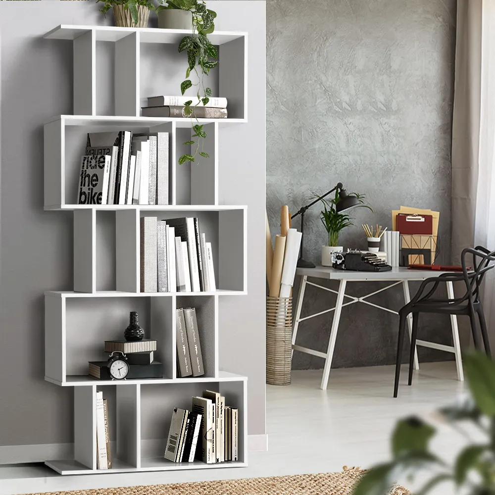 Combining contemporary zig zag design and aesthetics, our 5-tier bookshelf is the one that you should consider for your space. Its sleek and stylish appearance and beautiful white finish make it perfectly blend in your home d�cor, irrespective of what style your home represents. Made from premium quality particle board, the bookshelf is quite sturdy and has a 10kg capacity per shelf. Plus, it has ample storage space to store your collection, and you can even add more bookshelves according to your requirements. Also, you can use this bookshelf to showcase your artistic collection too.