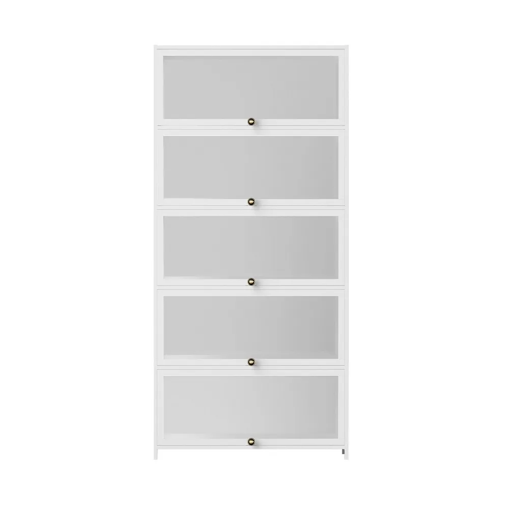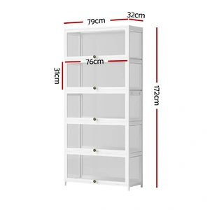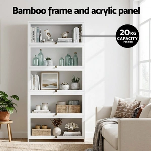 Versatile and functional, the 5-tier Artiss bookshelf has plenty of storage space for your books, CDs, DVDs and anything worth displaying your passion. The transparent appearance of the display cabinet present a better looking and clearer display of your items, while the clear panel seamless blend with the surrounding environment adds to its aesthetic appeal.The display cabinet is made of acrylic panel and solid bamboo boards, which ensure the stability of the display cabinet and provide long-time service. The bamboo material won't be affected by damp or rainy days.The flip-top door is easy to open and close, push-in and hoverable design will not occupy our space when it is opened. The door panel has a magnetic suction function makes it more airtight and dust-proof.