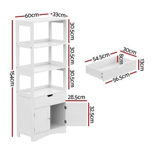 Our Artiss Bathroom Storage Cabinet is designed for optimum organisation, featuring three open shelves for versatile item storage and drawer with grooved handle for effortless access. Crafted for easy assembly, this versatile piece effortlessly complements any bathroom decor and can be utilised in other areas of your home for additional storage.
